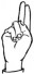 На ћирилици написано НЕВЕНА БАИНОВИЋ састоји се из 14 слова [?]. Исписано ћириличном једноручном азбуком за глувонеме: